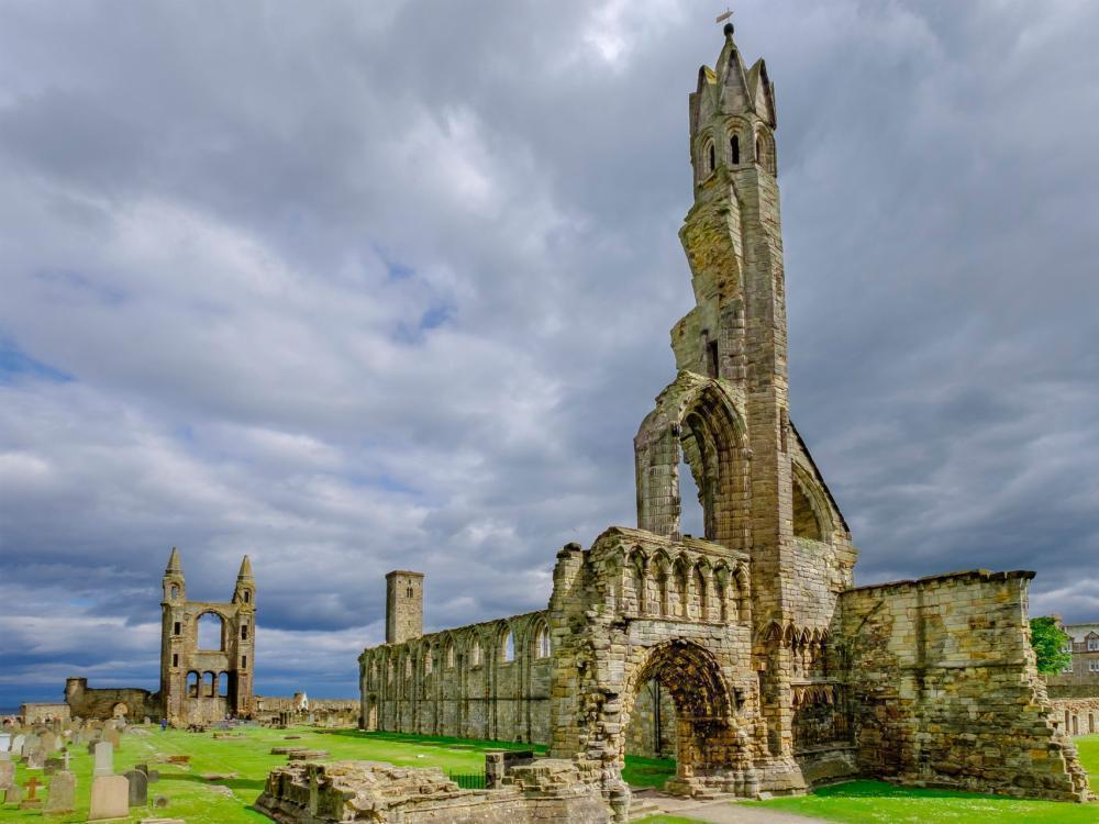 Pastatyta XI ir XII amžiuje, Šv. Andriejaus katedra daugelį amžių buvo laikoma didžiausia Škotijoje. Tačiau po kelių išpuolių ir smarkių audrų ji tapo akmeniniais griuvėsiais, vainikuojančiais vaizdingą uolą, iš kurios atsiveria vaizdas į Šiaurės jūrą. Kapinės, esančios greta šių buvusios didybės liekanų, puikiai dera prie vietos atmosferos. Čia golfo entuziastai gali grožėtis garsaus XIX a. škotų tenisininko Tomo Morriso kapu, o intelektualai ir istorikai būtinai turėtų aplankyti greta esantį viduramžių skulptūrų muziejų. Mistikos mėgėjai taip pat ras ką veikti Šv. Andriejaus katedros kapinėse: sakoma, kad naktį šalia kapų galima sutikti draugiško vienuolio arba (deja, ne tokios draugiškos) Baltosios ponios šmėklą.