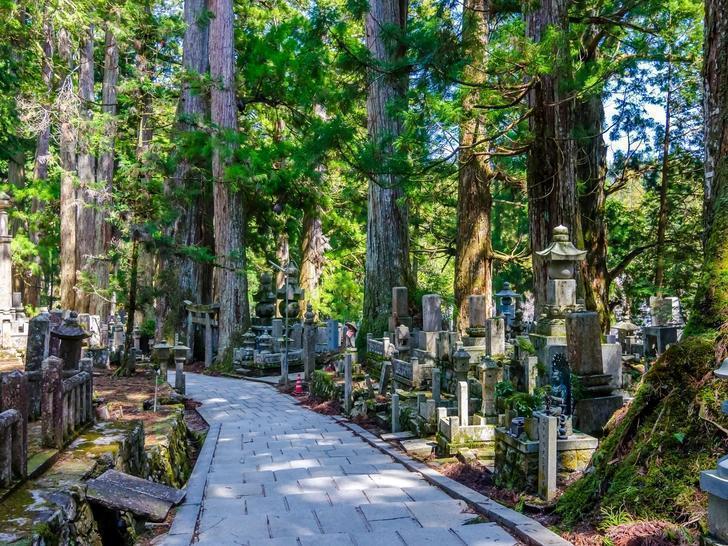 Daugelis turistų teigia, kad vaikštinėdami po didžiausias Japonijos kapines, datuojamas 816 m. po Kr., jautėsi ramūs ir giliai dvasingi. Apsuptose didingų kedrų, Okunoino kapinėse yra daugiau nei 200 tūkst. budistų vienuolių, įskaitant garsų Japonijos kultūros ir politikos veikėją Kukai, memorialai. Jo kriptos vartai papuošti 10 tūkst. žibintų. Vietos vienuoliai du kartus per dieną aukoja ritualinį maistą mirusiųjų relikvijoms. Įdomu tai, kad galingas religinis Okunoino kapinių komponentas harmoningai dera su šiuolaikinio meno instaliacijomis. Pavyzdžiui, paminklas kavos puodeliui, pastatytas Japonijos kavos kompanijos darbuotojų garbei, ir netgi pesticidų kompanijos paminklas, skirtas termitams.