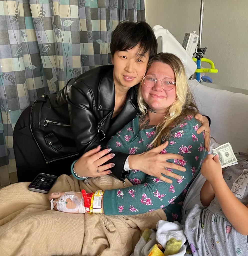 2025 m. kovo 13 d. K. Elliott pagimdė mergaitę. S. Zhang atvyko į ligoninę praėjus kelioms valandoms po gimdymo. Pasak K. Elliott, atvykėlė buvo liekna ir beveik nežiūrėjo į kūdikį. S. Zhang padėjo K. Elliott ant kelių 2000 dolerių ir išvyko su kūdikiu į oro uostą. Vėliau S. Zhang parašė, kad mergaitė pavadinta Hayes vardu ir kad ji norėtų, jog K. Elliott išnešiotų dar vieną vaiką jų šeimai.